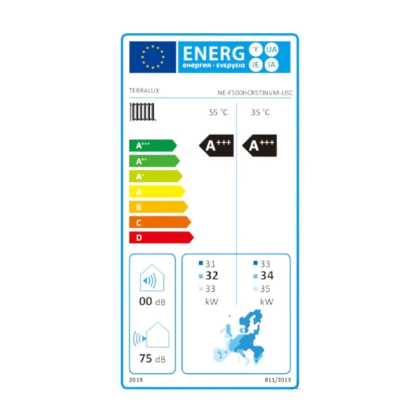 • A+++ energiahatékonysági besorolás 35 °C és 55 °C előremenő vízhőmérséklet mellett